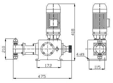 型號 | 流量(L/H) | 壓力(Mpa) | 柱塞直徑(mm) | 行程(mm) | 泵速(mm) | 電機功率(kw) | 進出口徑(DN) | 重量(kg) |